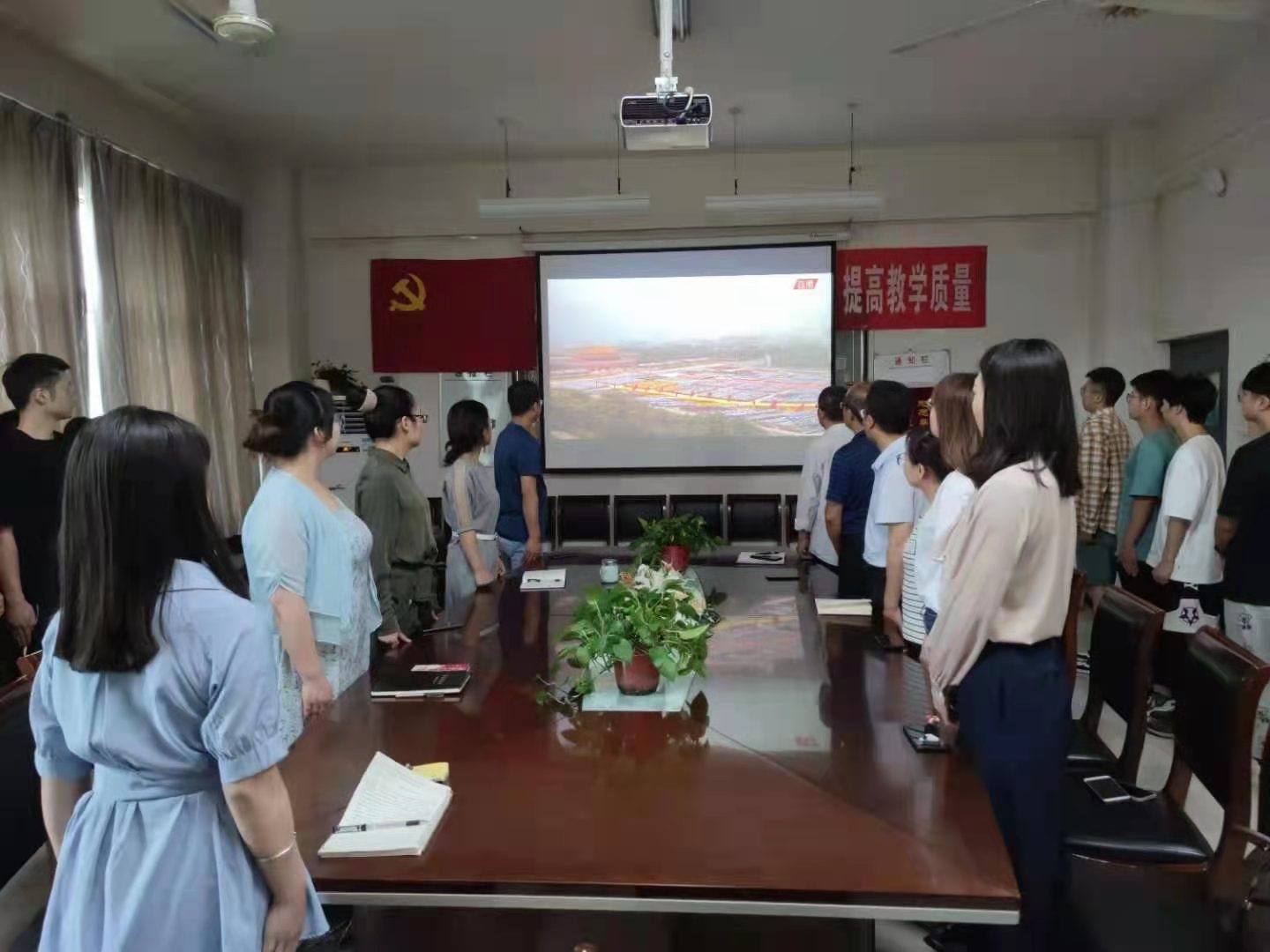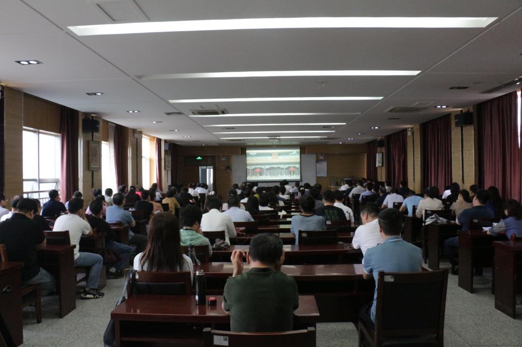 学校党委委员和机关党委下属各部门人员收看大会盛况现场