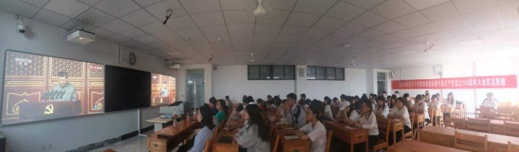 百年征程波澜壮阔,百年大党风华正茂!2021年7月1日上午8时,庆祝中国共产党成立100周年大会在北京天安门广场隆重举行。中共中央总书记、国家主席、中央军委主席习近平出席大会并发表重要讲话。学校党委委员和机关党委下属各部门全体人员在逸夫楼科学讲堂集中收看,各党总支、各单位设立分会场,通过电视、网络集中收看大会盛况直播,全校数万名师生共同见证这一伟大时刻。