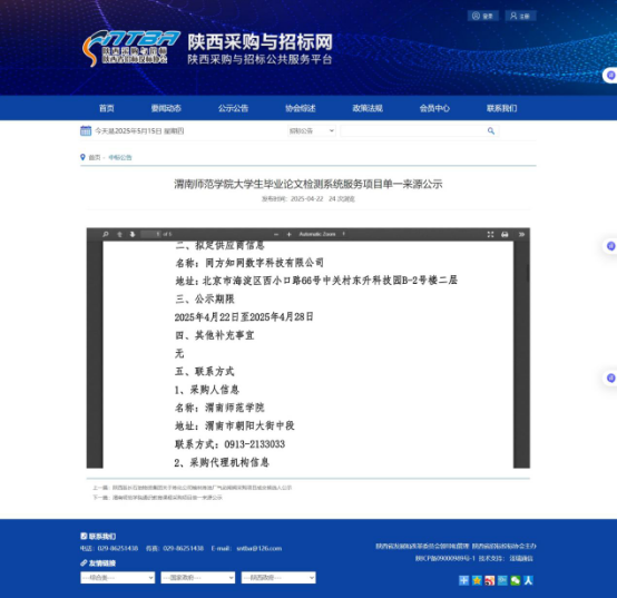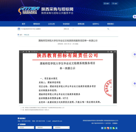bat365正版唯一官网大学生毕业论文检测系统服务项目单一来源公示