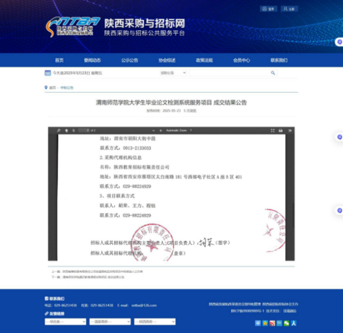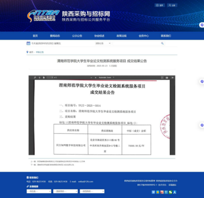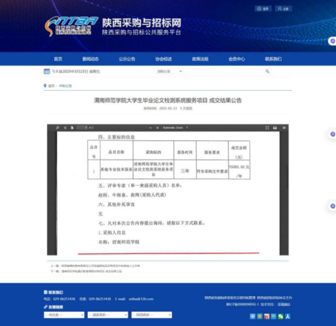 bat365正版唯一官网大学生毕业论文检测系统服务项目成交结果公告