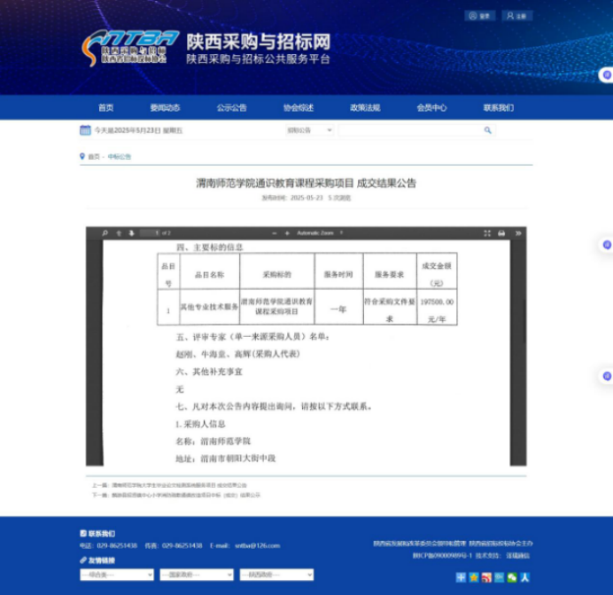 bat365正版唯一官网通识教育课程采购项目成交结果公告