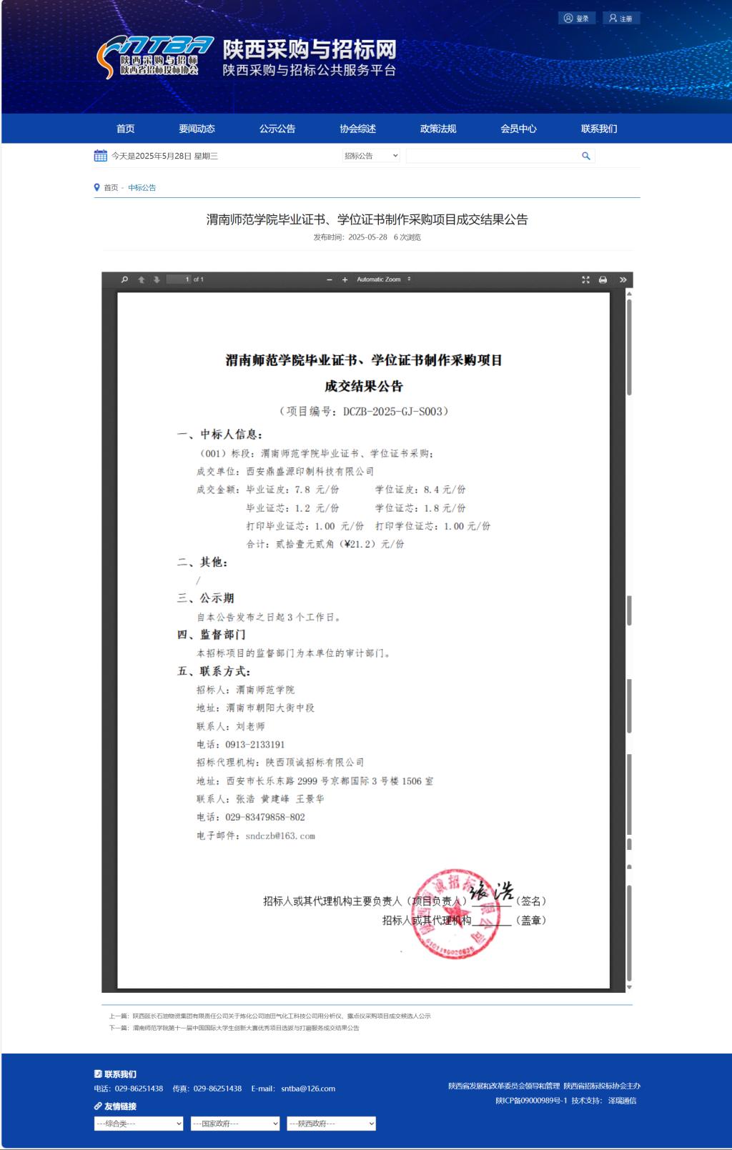 bat365正版唯一官网毕业证书、学位证书制作采购项目成交结果公告