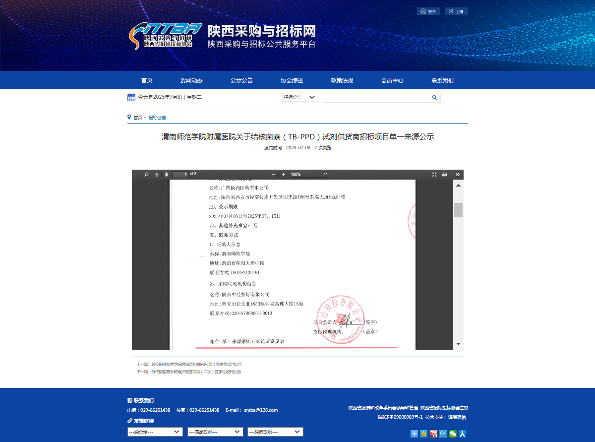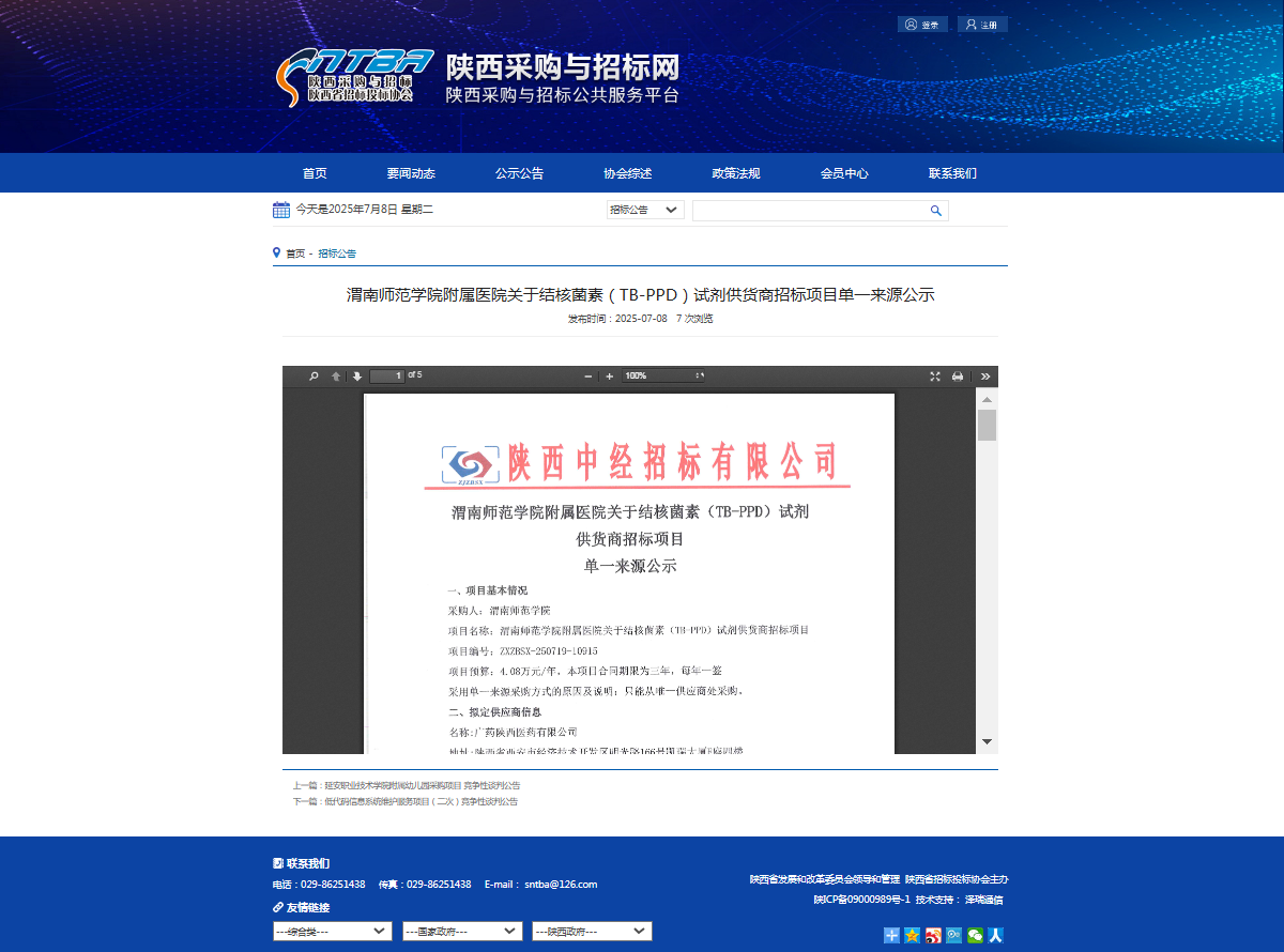 bat365正版唯一官网附属医院关于结核菌素(TB-PPD)试剂供货商招标项目单一来源公示