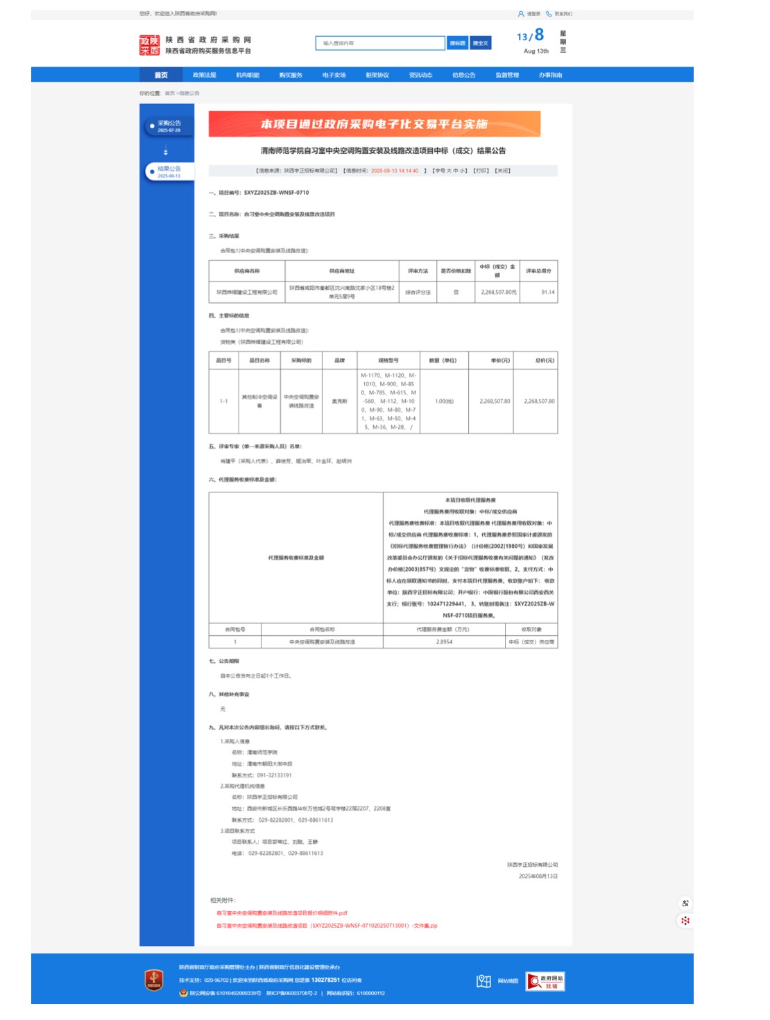 bat365正版唯一官网自习室中央空调购置安装及线路改造项目中标(成交)结果公告
