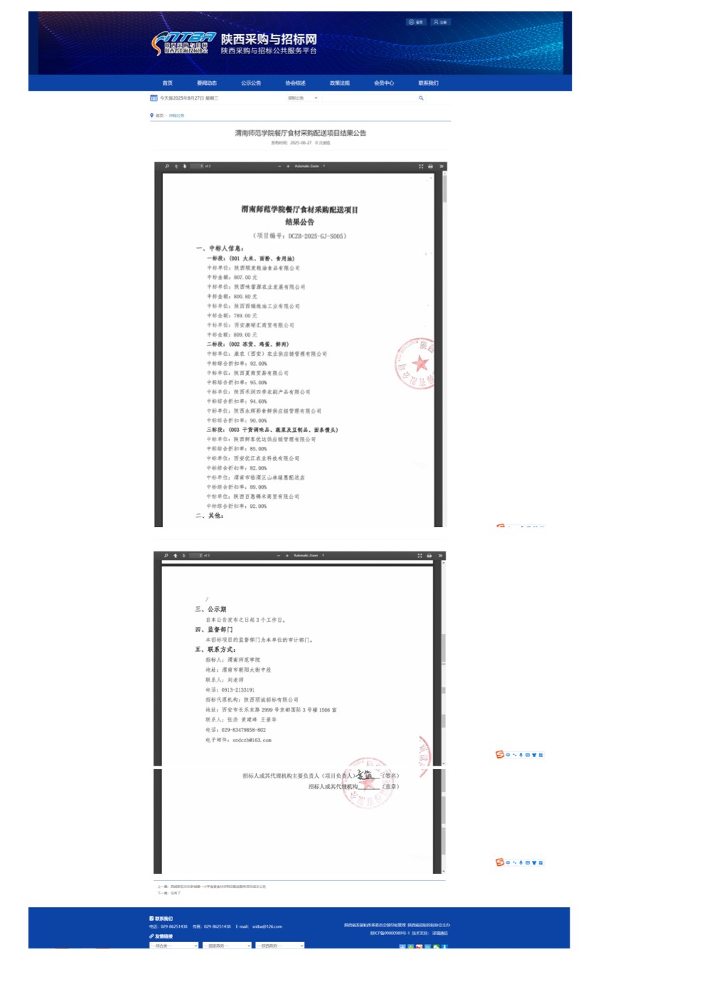 bat365正版唯一官网餐厅食材采购配送项目结果公告