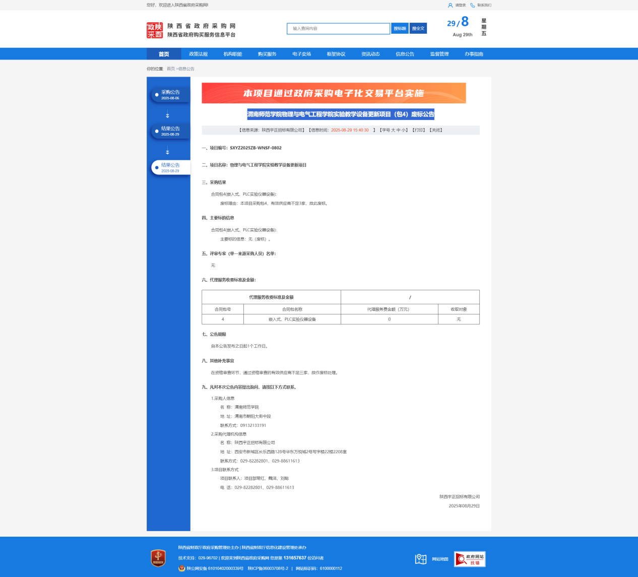bat365正版唯一官网物理与电气工程学院实验教学设备更新项目(包4)废标公告