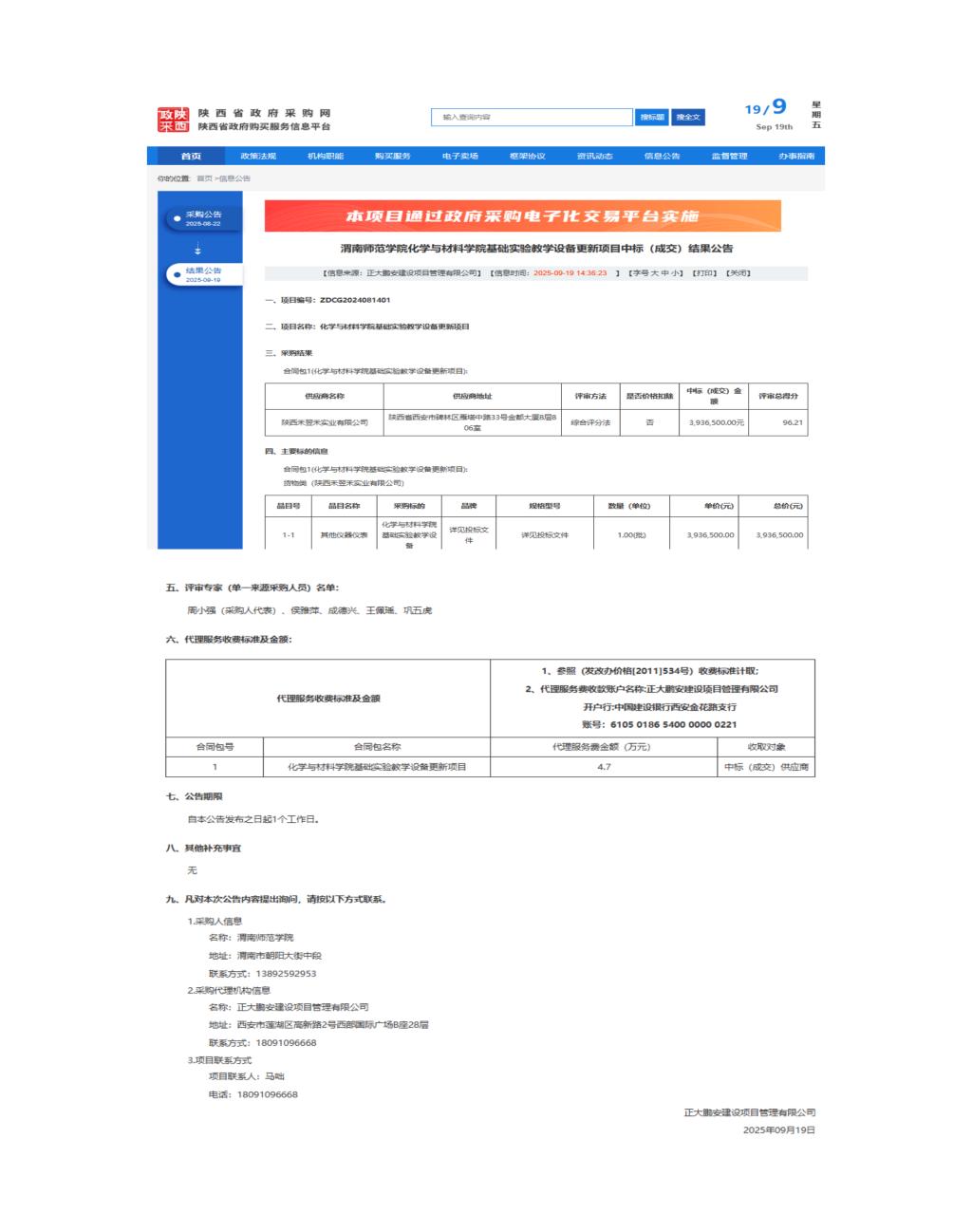 bat365正版唯一官网化学与材料学院基础实验教学设备更新项目中标(成交)结果公告