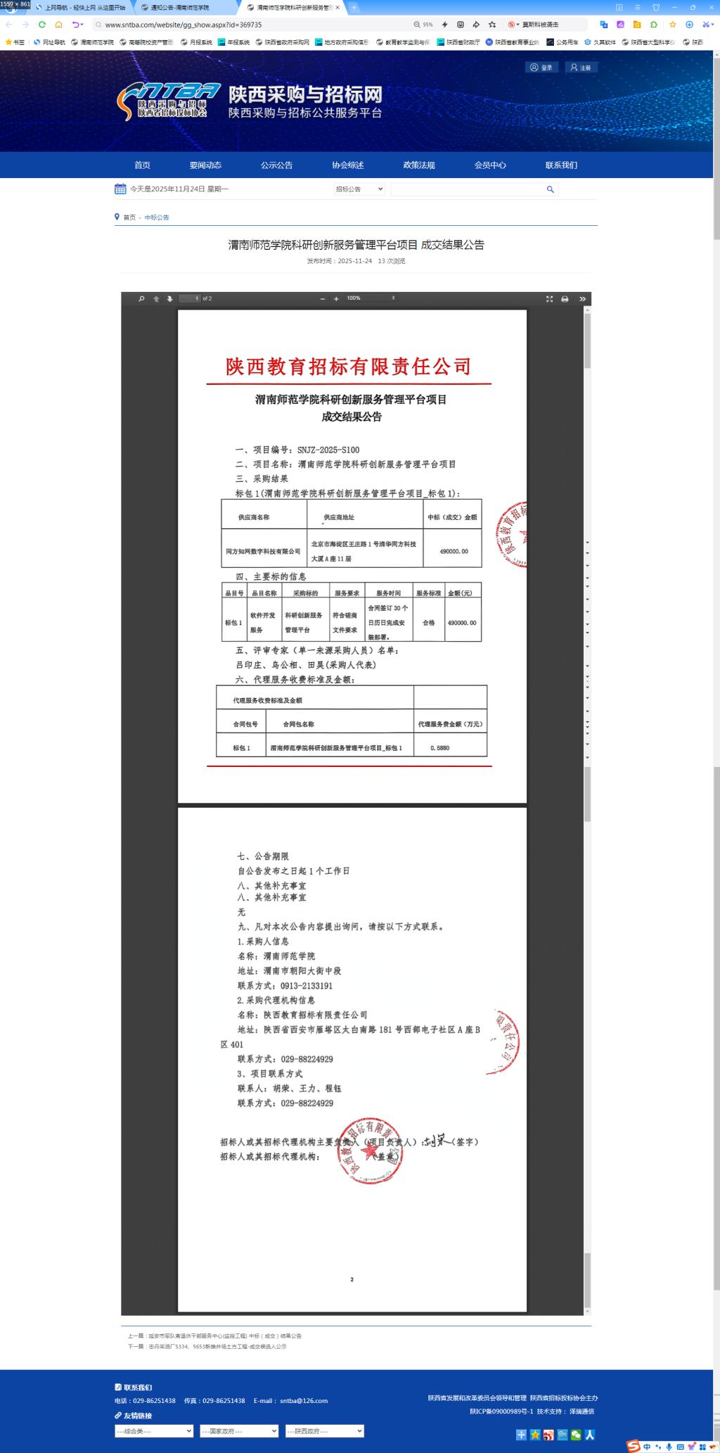 bat365正版唯一官网科研创新服务管理平台项目成交结果公告