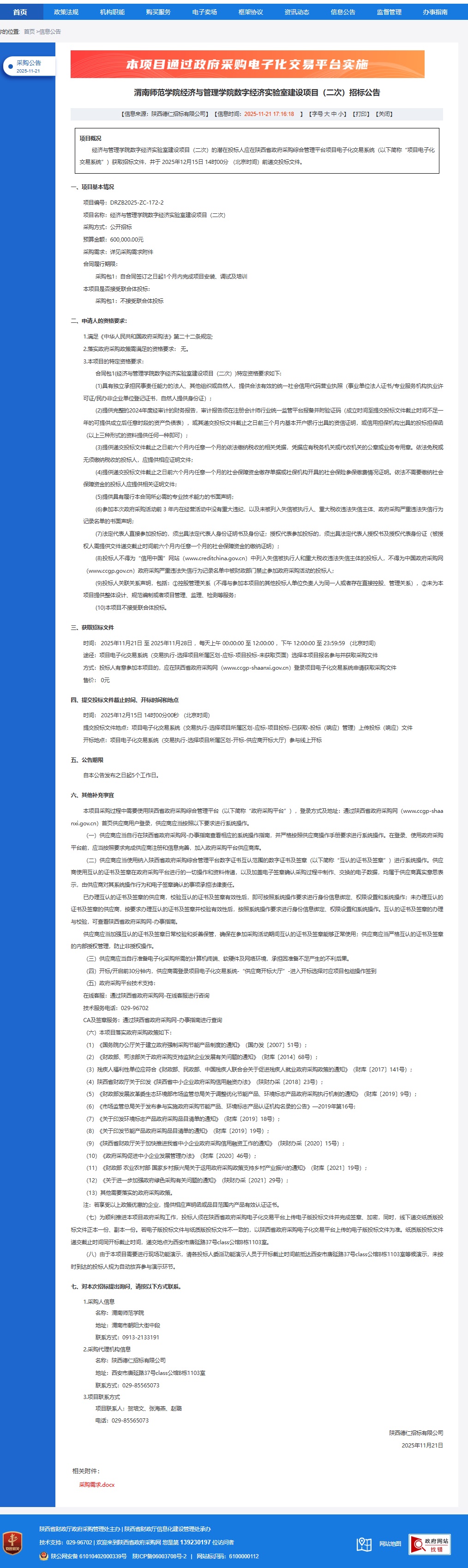 bat365正版唯一官网经济与管理学院数字经济实验室建设项目(二次)招标公告