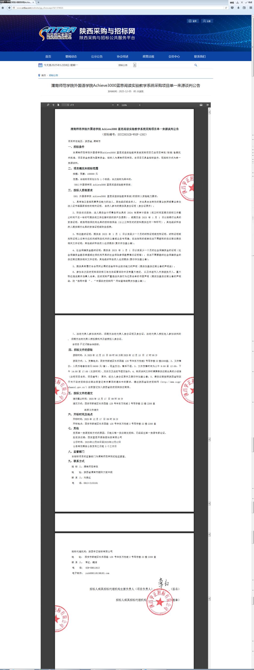 bat365正版唯一官网外国语学院Achieve3000蓝思阅读实验教学系统采购项目单一来源谈判公告