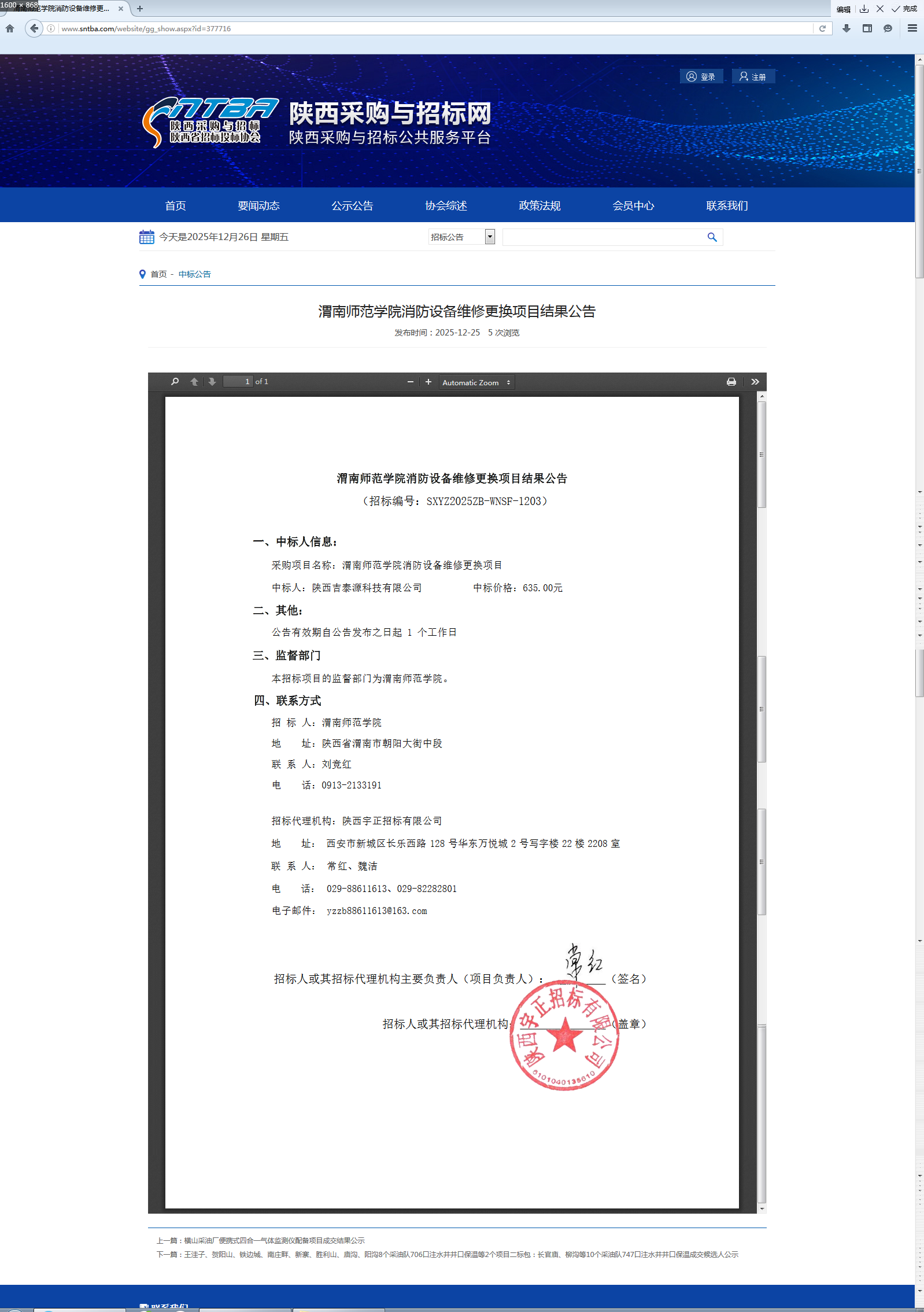 bat365正版唯一官网消防设备维修更换项目结果公告