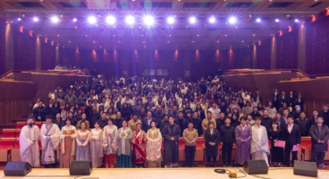 “汉代深衣体现‘天人合一’的哲学,唐代襦裙彰显开放包容的气象……”子虞以服饰为线索,将朝代更迭、社会风貌的变迁娓娓道来,让师生在衣袂飘飘间读懂“衣冠上国”的审美与精神传承,不少同学在试穿后直言“仿佛穿越时空,对传统文化的亲近感瞬间拉满”。