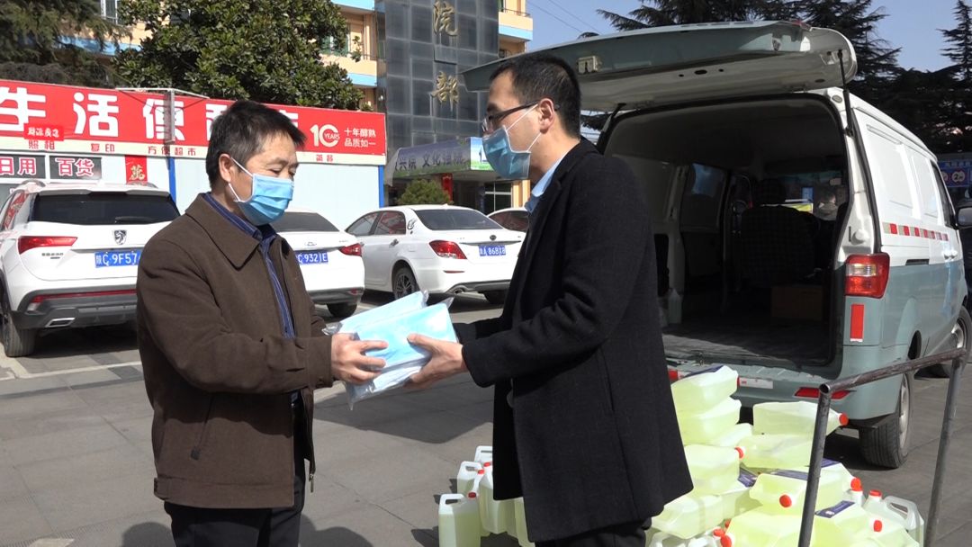 近日,bat365官网人文学院校友、凤翔县农机推广服务中心副主任刘亚斌将自己经过多方联系,自费购买的价值4500元的200只一次性医用口罩、500斤(100桶)医用84消毒液,送到了凤翔县医院工作人员手中。