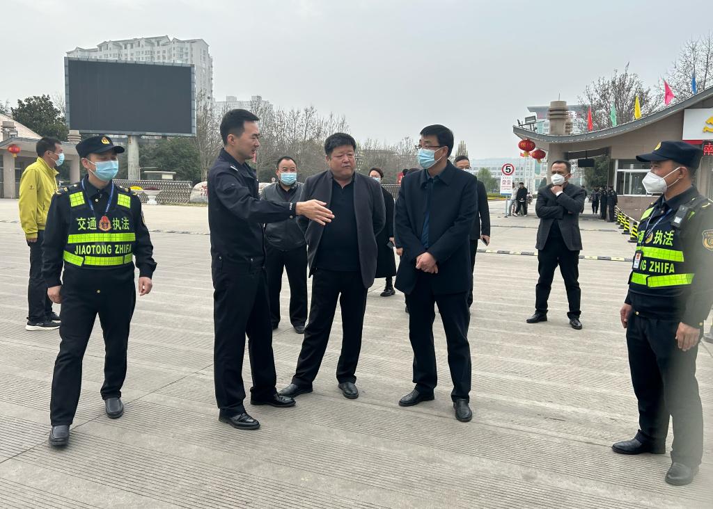 当天,在学校北门口渭南市交通运输综合执法支队、路政执法科科长雷俊岭,渭南市公安局交通警察支队、临渭大队交通秩序管理中队中队长张宁就校门口出租车乱停乱放问题进行现场督办。