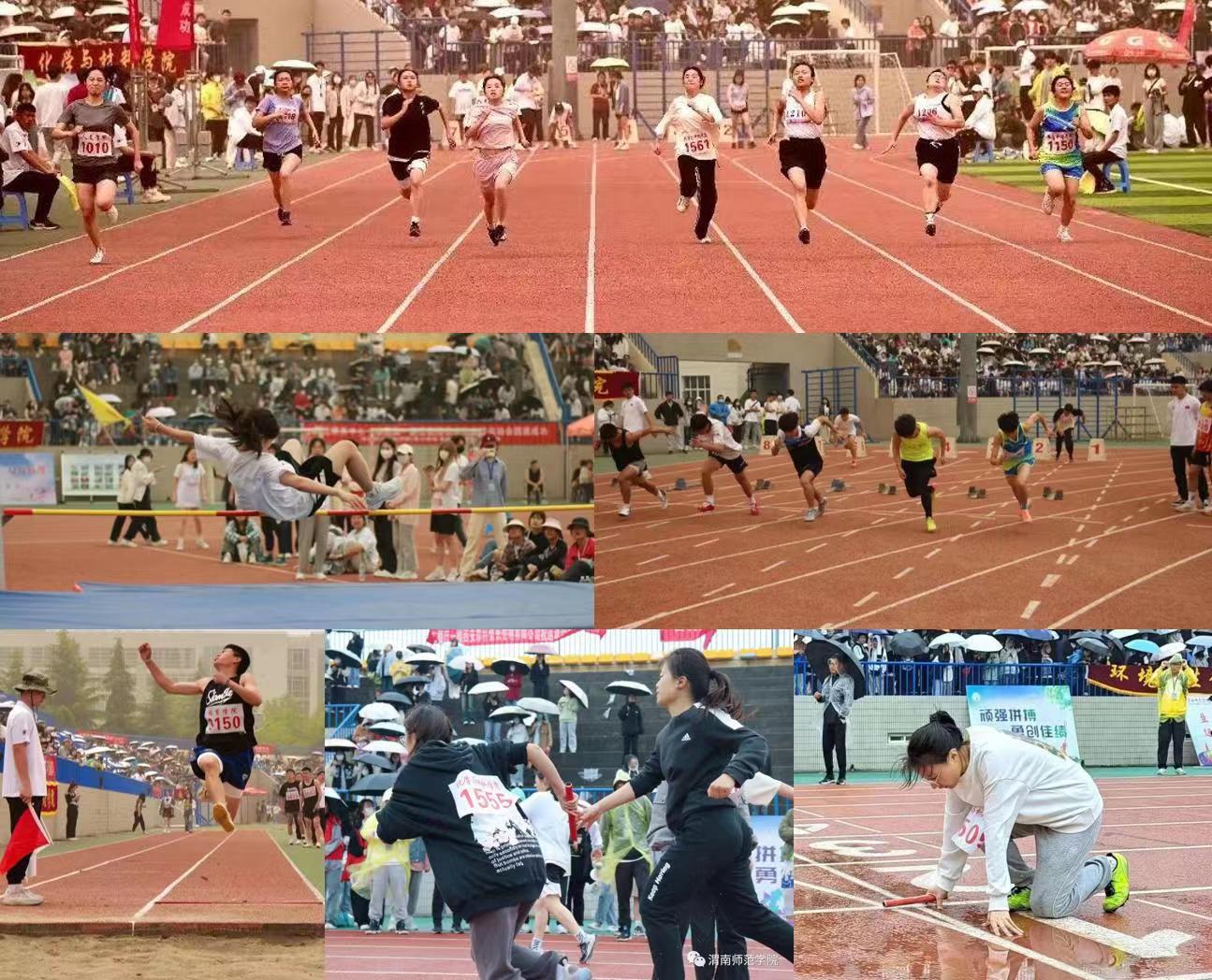 赛场上,100米、200米、400米、800米、1500米、3000米、跳高、跳远、三级跳远、铅球、4×100米接力、4×400米接力、4×800米男女混合接力等54个学生竞赛项目,实心球掷准、托球跑、50米跳绳、智传呼啦圈、持球接力、射艺等6个教职工竞赛项目陆续展开比拼。参赛选手们英姿飒爽,奋力拼搏,发扬了不怕苦、不怕累、积极拼搏的精神,用行动诠释了更快、更高、更强的体育理念,在老师和同学们的喝彩声鼓舞下,用青春挥洒着汗水争得了一项又一项荣誉。