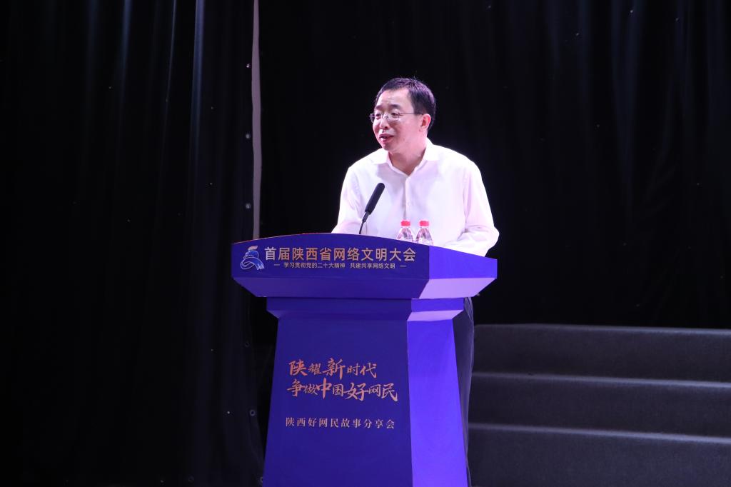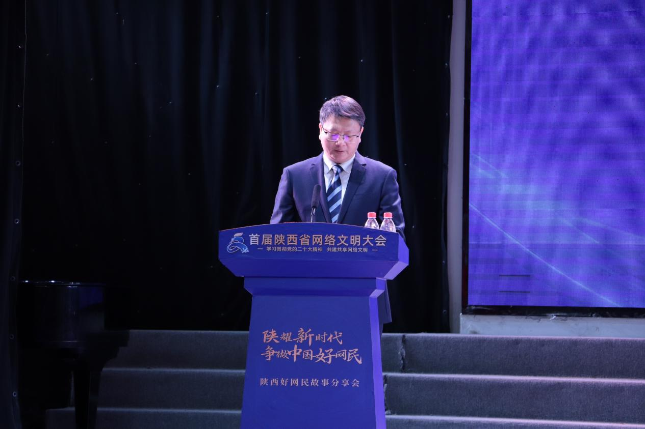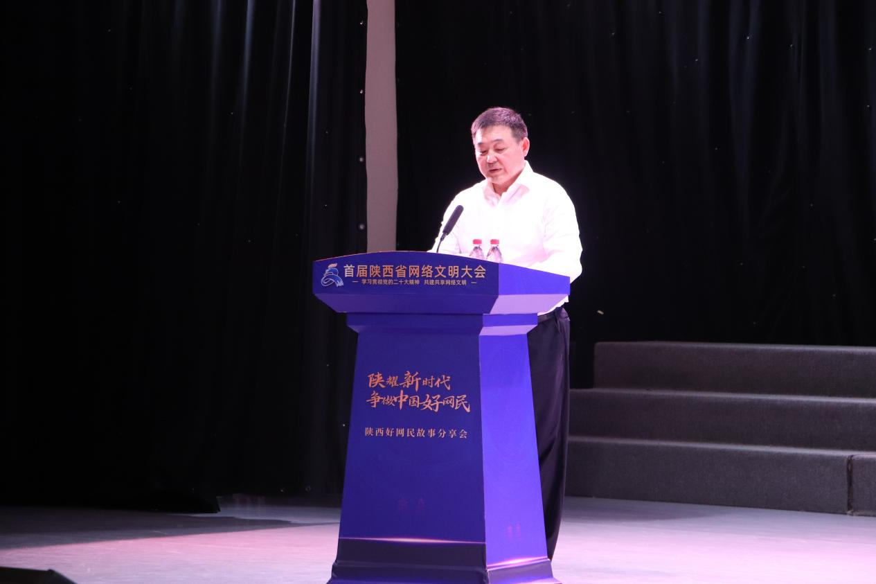 5月30日下午,“陕”耀新时代·争做中国好网民——陕西好网民故事分享会在bat365官网陶然楼演艺厅开讲。陕西省委网信办主任柯昌万,渭南市政府副市长张开,党的二十大代表、西安易俗社有限公司党支部书记、总经理惠敏莉,陕西省广播电视局总工程师闫东伟,bat365官网党委书记卓宇、校长张守华等有关领导以及延安市、汉中市、铜川市和渭南市有关同志出席活动。