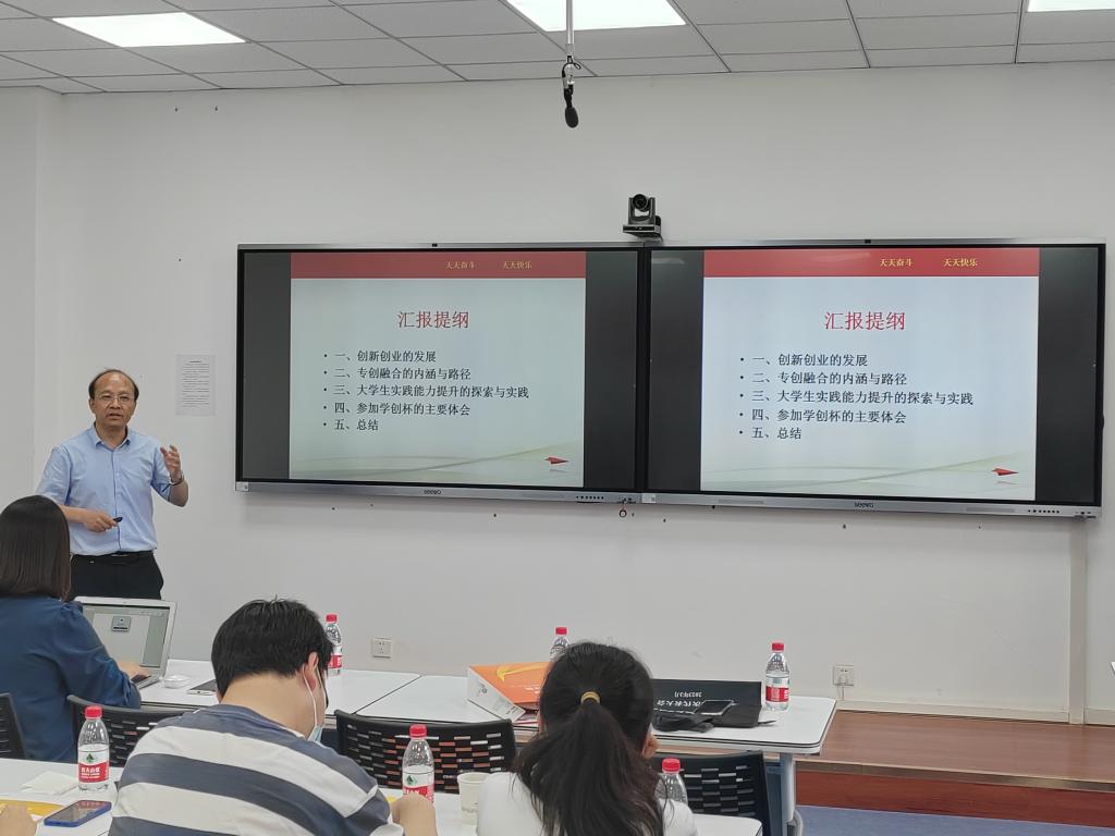 竞赛期间,陕西省高校数智双创师资交流会同时召开。bat365官网经济管理学院李富荣教授作了题为《专创融合与大学生实践能力提升探索与实践》专题报告,与全省20余所高校的经管学院领导、双创课程建设负责人、双创赛事负责人及骨干教师分享交流。