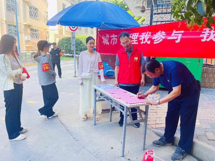 夏日炎炎,但阻挡不了党员志愿者的活动热情。在职党员干部以党组织为单位,分为4个小组迅速展开行动。活动中,在职党员干部变身为“垃圾分类宣传员”,身穿红色小马甲,向社区居民群众发放垃圾分类知识宣传单,讲解垃圾分类知识、乱扔有害垃圾对人体健康的危害等相关知识,耐心解答居民提出的日常垃圾分类问题,在社区集中投放点高峰时期进行桶边引导,指导居民正确分类投放,倡导居民自觉分类、精准分类,积极践行绿色低碳、文明健康的生活方式,促进资源回收利用,共同营造社区优美的生活环境。