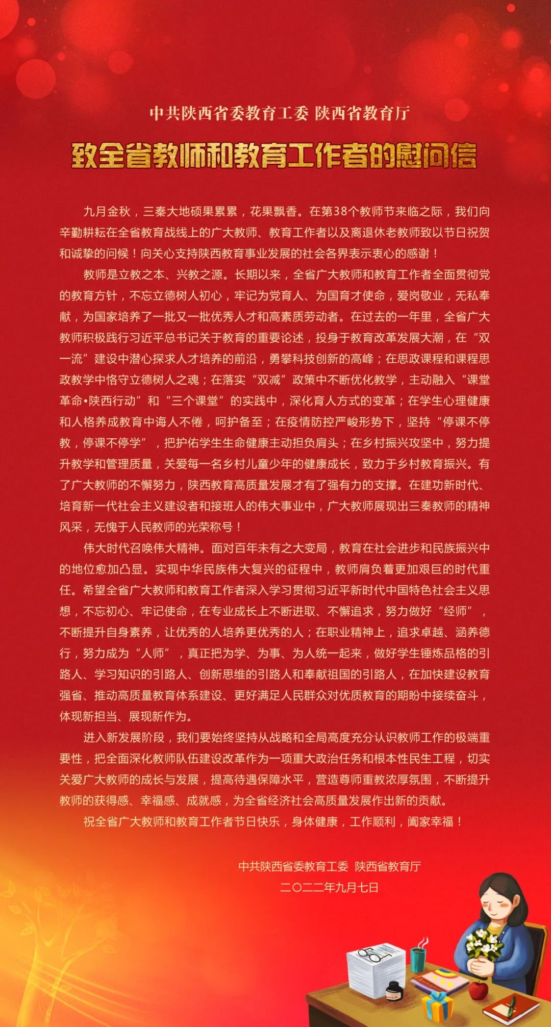 致全省教师和教育工作者的慰问信