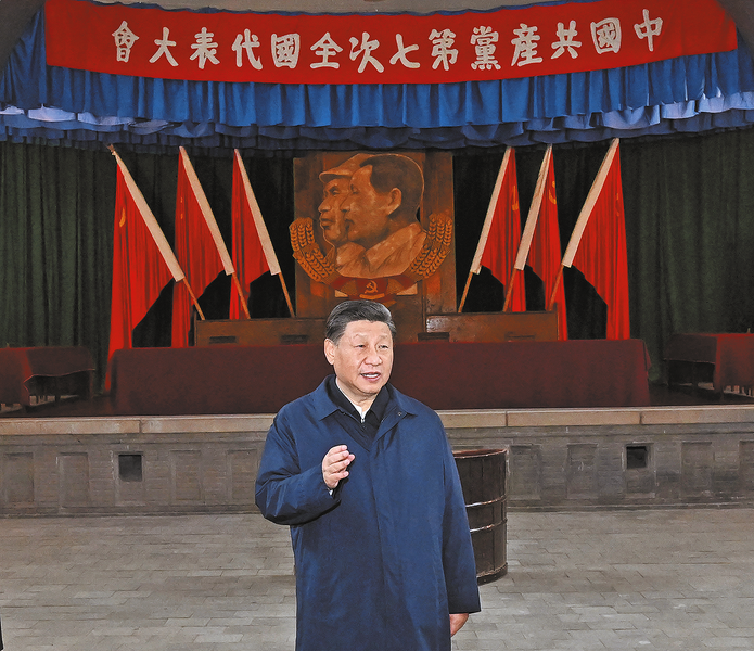 随后,习近平等来到毛泽东等老一辈革命家旧居,重温老一辈革命家在杨家岭的革命经历,了解革命旧址保护情况。在延安时期,杨家岭是毛泽东居住时间最长的地方,著名的“窑洞对”就是在这里进行的。“窑洞对”的要义,是回答如何跳出治乱兴衰历史周期率、避免人亡政息、确保政权长期存在的问题。在“窑洞对”中,毛泽东同志给出了第一个答案,这就是让人民监督政府。党的十八大以来,以习近平同志为核心的党中央在全面从严治党的实践中给出了第二个答案,这就是党的自我革命。习近平指出,延安革命旧址见证了我们党在延安时期领导中国革命、探索马克思主义中国化时代化的光辉历程,是一本永远读不完的书,每次来都温故而知新,受到深刻教育和启示。要管理好、研究好,结合现实讲好杨家岭的故事、讲好党的七大的故事。
