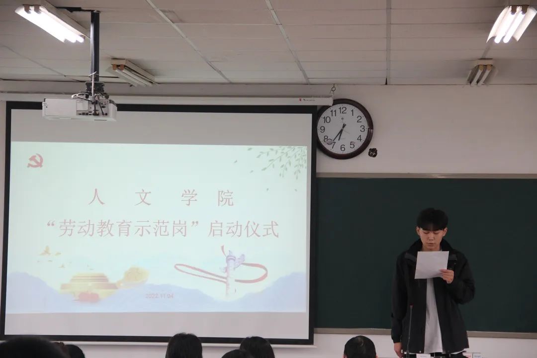 11月4日下午,人文学院举行 “劳动教育示范岗”启动仪式。该院党总支书记李三岗,党总支副书记、副院长张晶,党务秘书乔晓琼,学工办主任白光霁,团总支书记孟子祥,辅导员周雨坤、杨帆,以及60余名学生党员、入党积极分子参加了启动仪式,辅导员邱渭勤主持会议。