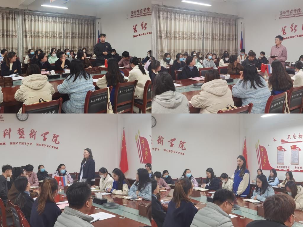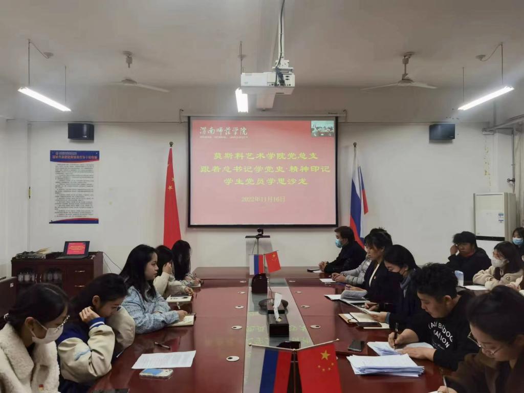 11月16日晚,莫斯科艺术学院党总支在逸夫楼六楼会议室举办“跟着总书记学党史·精神印记”学生党员学思沙龙活动第一期。
