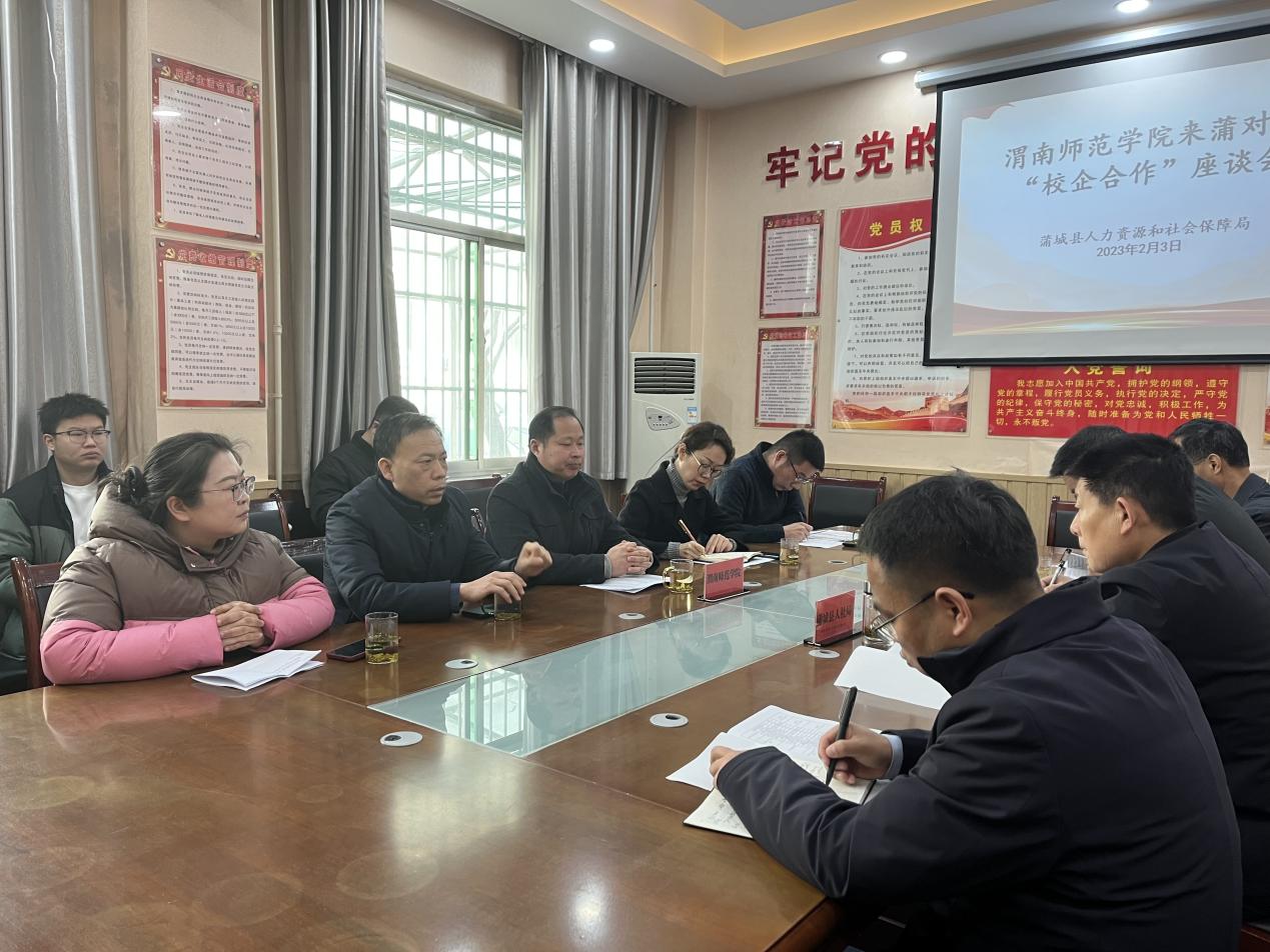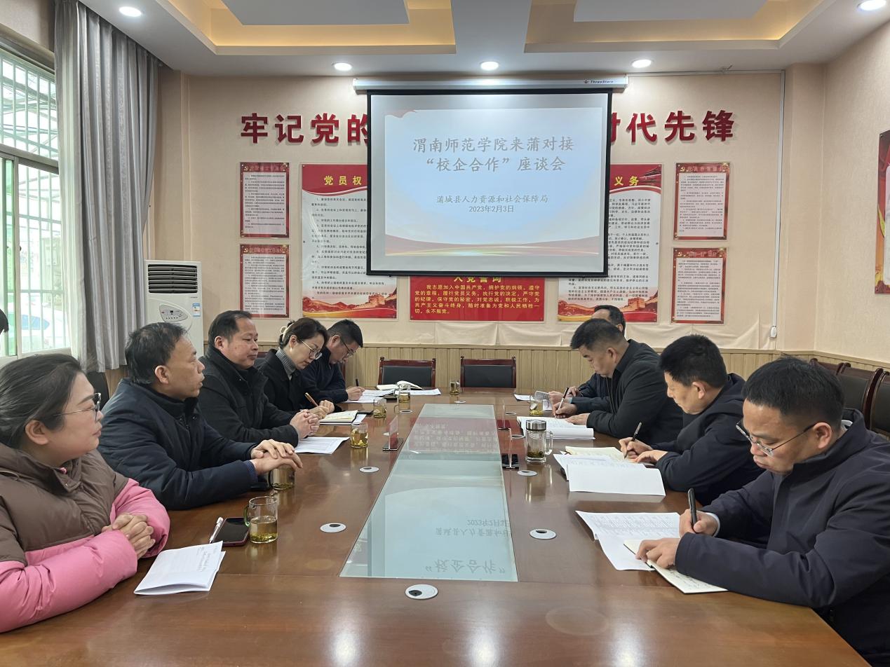 任晓婷就化学与材料学院建设、办学方向、专业设置、师资力量、生源情况等方面作了细致介绍,韩城忠对目前学院毕业生就业思想动态、就业形势、情况等进行补充说明。蒲城县人社局副局长王勇、王晓刚分别就企业数量、性质、用工需求及人才招聘、教师招聘、事业单位招聘等方面进行交流。