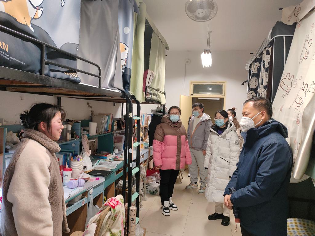 走访期间,韩城忠详细了解了学生思想、学习、健康等方面情况,他表示,学院高度关切广大学生的身心健康,叮嘱学生做好个人健康防护工作。提醒学生遇到困难及时联系辅导员老师,学院将给予帮助。同时强调辅导员要深入学生宿舍,排查安全隐患,发挥好辅导员工作站的作用;加强与学生沟通联系,拉近师生关系,成为学生成长路上的指路明灯。任晓婷激励学生调整好心态,以饱满的热情迎接期末考试。同时要求学生注重宿舍的文化建设,养成良好的生活习惯,以勤勉好学、求实认真的学习态度为实现自己的奋斗目标而不懈努力。