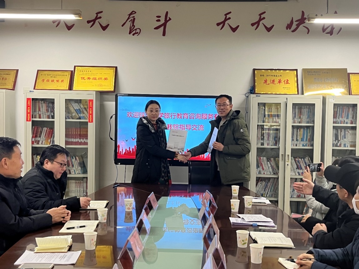 2月14日,陕西研学旅行教育咨询服务有限公司董事长乔海旭、总经理屈娟等一行来到经济与管理学院就推进校企合作暨文旅技术创新项目联合申报进行座谈交流。经济与管理学院旅游管理、市场营销专业负责人及部分教师参与,会议由李富荣院长主持。