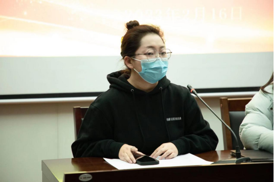 段菲总结了上一学期学生各项工作的开展情况并对本学期的工作进行了部署。她鼓励学生干部努力成为具有责任心、踏实肯干、勇于实践、积极进取的学生领头羊。希望学生干部在思想上树立主人翁意识,爱校爱学院;在态度上培养责任意识,对岗位负责;在行动上配合学院开展好各项活动和常规工作,团结协作,携手并进,勇于迎接挑战,切实有效地开展各项工作的同时提高自身的综合素质。