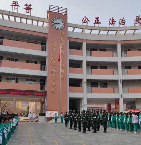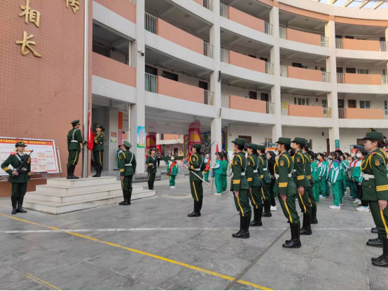 3月6日上午8时许,bat365正版唯一官网国旗护卫队队员身姿挺拔,步伐整齐,列队抵达渭南市实验小学。在雄壮的国歌声中,升旗手挥手飘扬起国旗,鲜艳的五星红旗迎风飘扬。少先队员和国旗护卫队队员们同时敬礼,全校师生一同注视着五星红旗缓缓升起,仪式热烈而隆重。