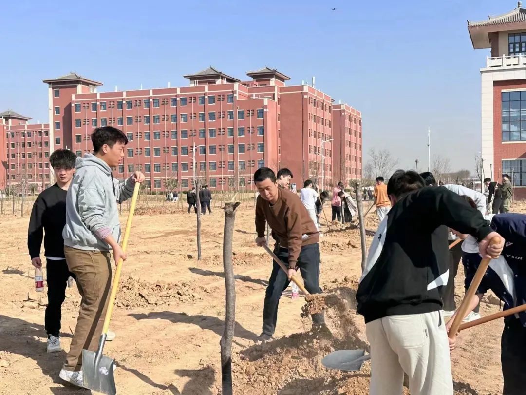 阳春三月,万物复苏。一年一度的植树节如期而至。为增强我院师生绿色环保意识,共建绿色文明校园。3月14日,物理与电气工程学院院长、部分教师、辅导员及学生代表等前往富平校区参加义务植树活动,以实际行动践行习近平生态文明思想,为校园生态环境建设做出贡献。