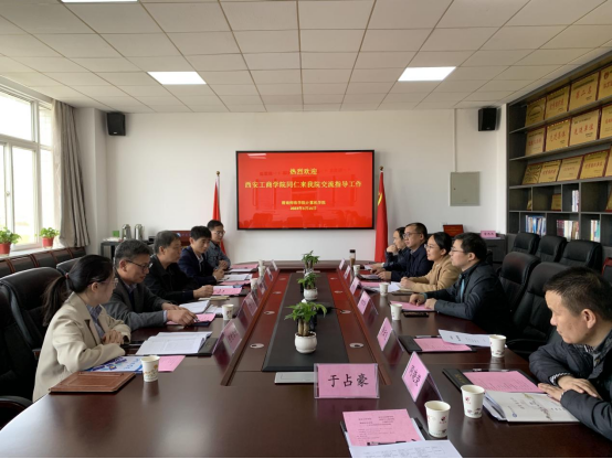 学院党总支书记武楠对西安工商学院一行到学院指导工作表示欢迎。院长杨方琦介绍了学院在人才培养、科学研究、国际交流与合作、社会服务等方面工作开展情况和取得的成效。董宝绥、唐红春、王飞也分别介绍了设计与创意学院、信息与工程学院的建设发展情况。