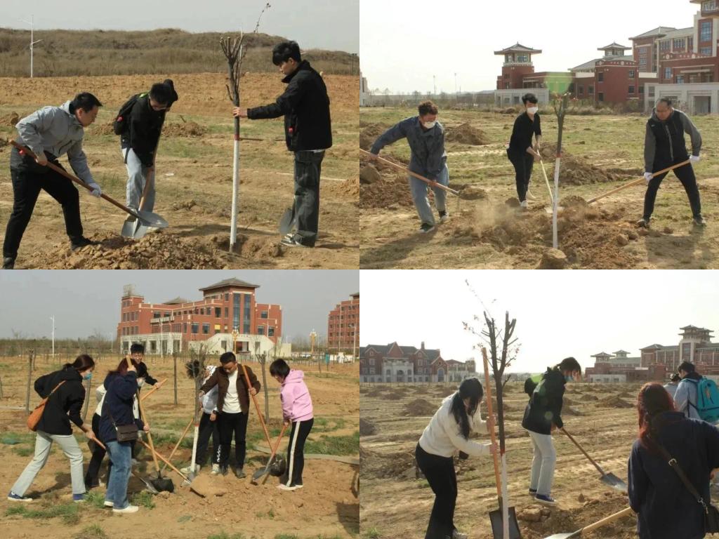 3月15日上午,人文学院处科级干部、全体辅导员、学生代表40余人前往富平校区参加2023年春季校园义务植树活动。