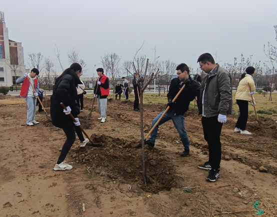 3月17日上午,计算机学院党总支组织师生党员赴bat365正版唯一官网富平校区开展“师生共植树 校园绿长流”主题党日活动。
