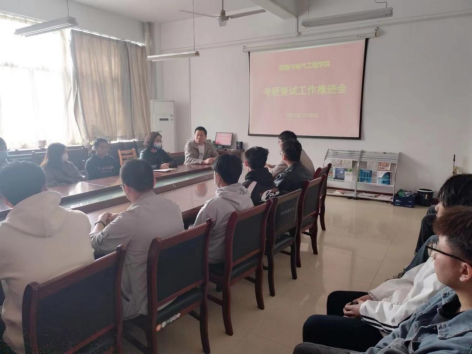 3月20日下午,物理与电气工程学院召开考研复试交流会,对考研上线学生的复试工作进行安排部署。学院院长袁卫、副书记权轻舟、副院长张修兴、学院教师王峰以及考研上线学生参加本次交流会。