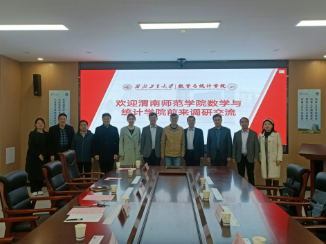 陈斌首先感谢西北工业大学数学与统计学院对我院3名交换生的培养和关注;从学院机构设置、师资队伍、学科平台、科研竞赛等方面作了简要汇报;他表示,双方签订研究生联合培养协议以来,两院合作进入新阶段,学院将继续加强和西北工业大学数学与统计学院的交流,助推学院的内涵发展。