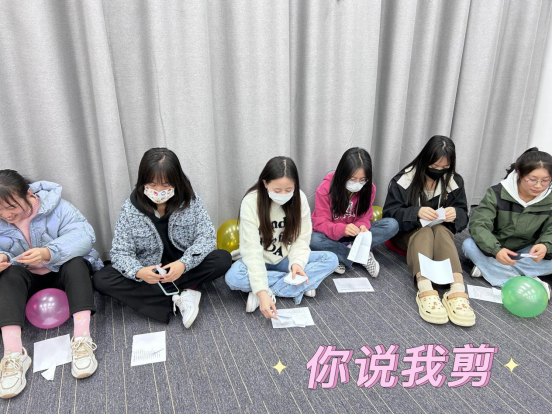 此次团辅活动由教育科学学院孙悦老师带领,以“团辅活动+讨论分享”的方式进行,通过“松鼠搬家”“人体拷贝”“传声筒”“你说我剪”四个小活动,旨在培养心理委员积极沟通的自主意识,掌握交流技巧,提高交往能力;增进辅导员与心理委员的相互了解认识,扫除心理委员与辅导员交流沟通的心理障碍,为日后更好的做好心理健康服务工作奠定良好基础。