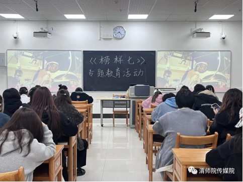 3月25日晚,传媒学院党总支师生融合党支部组织入党积极分子在108教室集体观看《榜样七》专题节目。