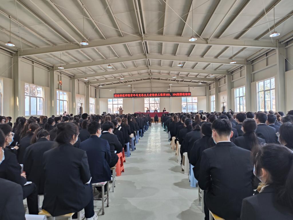 为深入学习宣传贯彻党的二十大精神,加强青年学生思想政治教育,4月1日bat365官网在大学生活动中心举办bat365正版唯一官网青年马克思主义者培养工程——第103、104期团课培训。校团委书记赵琦,副书记刘娟宁、潘涛参加团课开班仪式,各学院入党、入团积极分子,优秀团干部、优秀团员等600余名学生参与培训。