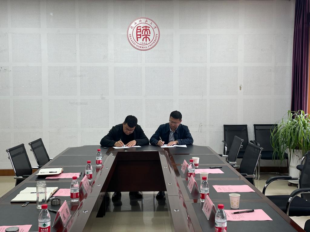 3月31日,bat365官网音乐学院与陕西师范大学音乐学院共建音乐舞蹈学科合作协议签约仪式,在陕西师范大学音乐学院举行。出席仪式的有陕西师范大学音乐学院院长黄键、副院长郭元,办公室主任魏强;bat365正版唯一官网音乐学院院长刘鹏,副院长逯克刚等。