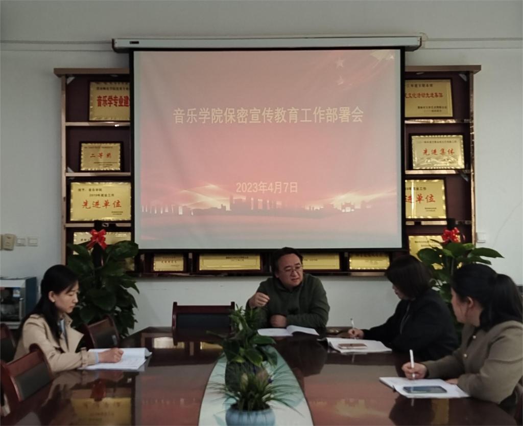 4月7日下午,音乐学院召开保密宣传教育工作部署会,安排开展第35个保密宣传教育月工作,会议由党总支书记白锐主持。