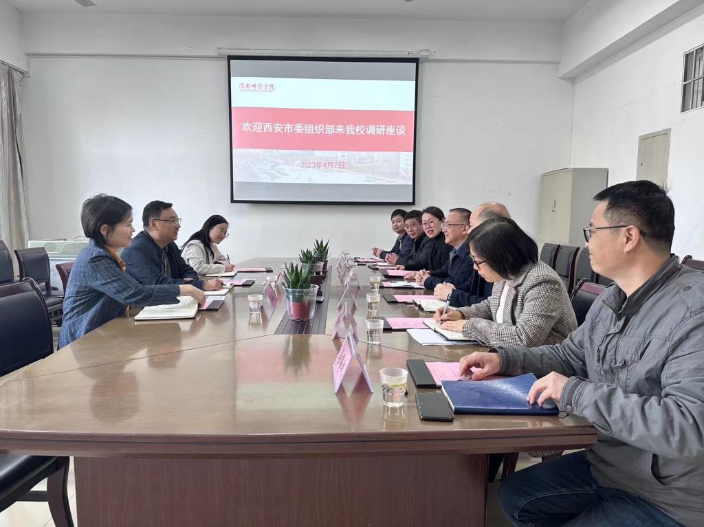 4月7日下午,西安市委组织部党员教育中心主任赵轩、干部宁侨侨和段苏宸一行来bat365官网调研座谈。bat365官网党委副书记袁亮出席座谈会,学工部部长田耿辉主持会议。