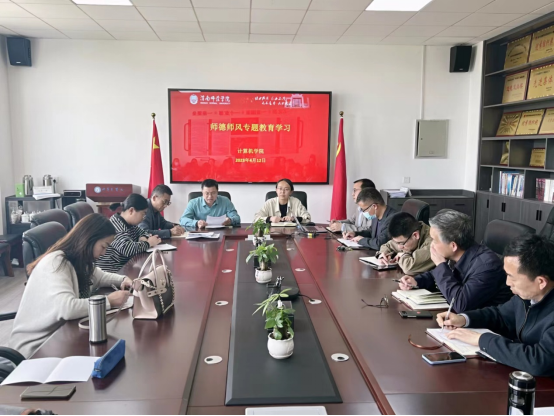 4月12日,计算机学院召开师德师风建设专题学习会议,全体教职工参会。会议由党总支书记武楠主持。