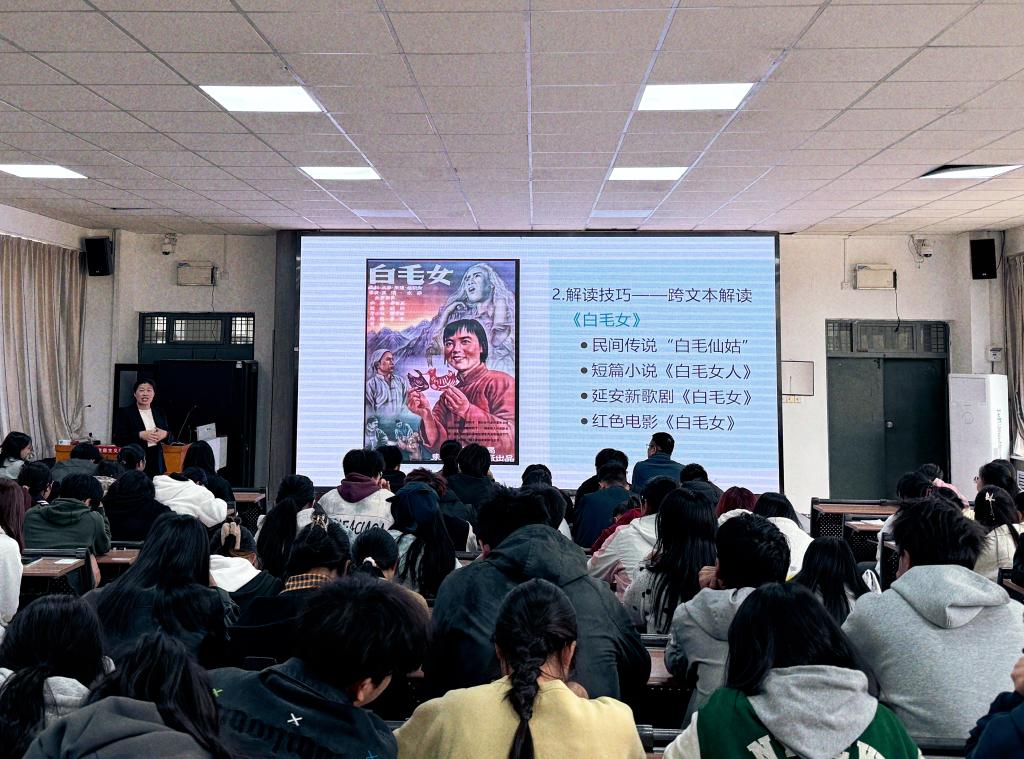 孟老师以柏拉图《理想国》中的“洞穴寓言”为切入点,巧妙地将哲学思考与电影艺术相结合,引导同学们深入思考电影与真实的关系。她梳理了电影诞生史,并结合《火车进站》《月球旅行记》《花样年华》等经典影片进行实例分析,让同学们直观感受到电影从技术发明到艺术表达的演变历程。围绕“如何看懂电影”这一问题,孟老师以《钢的琴》《阿甘正传》《白毛女》等影片为例,指出要知人论世,在观影过程中,紧密结合导演的创作背景与影片所处的时代语境展开剖析,以此深化对影片的理解;要运用专业理论知识进行意识形态分析,洞悉影片潜藏的价值取向;要开展跨文本解读,对比同类或相关文本,从多个维度挖掘影片的深层内涵。此外,她还精心推荐了多部涵盖多元题材的影片,为大家奉上了一场跨越时空的光影盛宴。