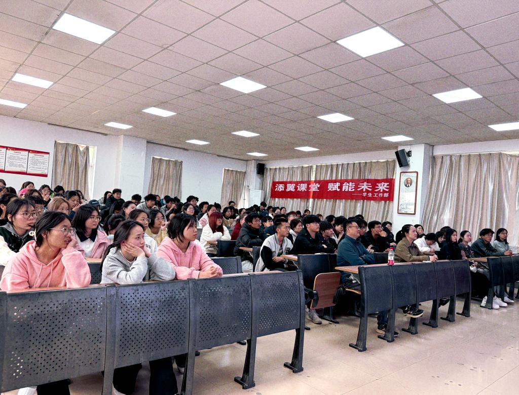 4月2日下午,学生工作部(处)在1101教室举办“添翼课堂”活动。传媒学院孟丽花教授受邀为140余名家庭经济困难学生带来《一堂电影课》专题讲座,讲座由学生工作部(处)副部长马耀斌主持。