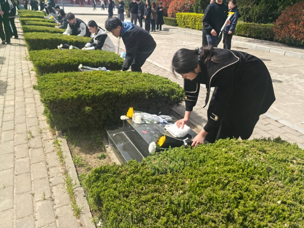 仪式结束后,全体人员走进烈士墓区,依次敬献鲜花,轻轻擦拭墓碑、清理落叶,表达对烈士英雄的无限敬仰和缅怀之情。