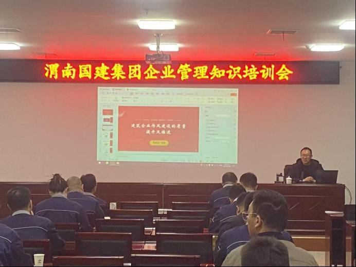近日,李永生教授以《建筑企业作风建设的质量提升及推进》为题给渭南产投集团国建集团作报告,报告从制度、生活、工作、思想、学风、领导等方面的作风进行讲授,主要阐述建筑类国有企业的员工和领导在管理效率和绩效激励机制建设方面作风的建设路径及实施策略,起到了提高认识、统一思想、明确目标的作用。