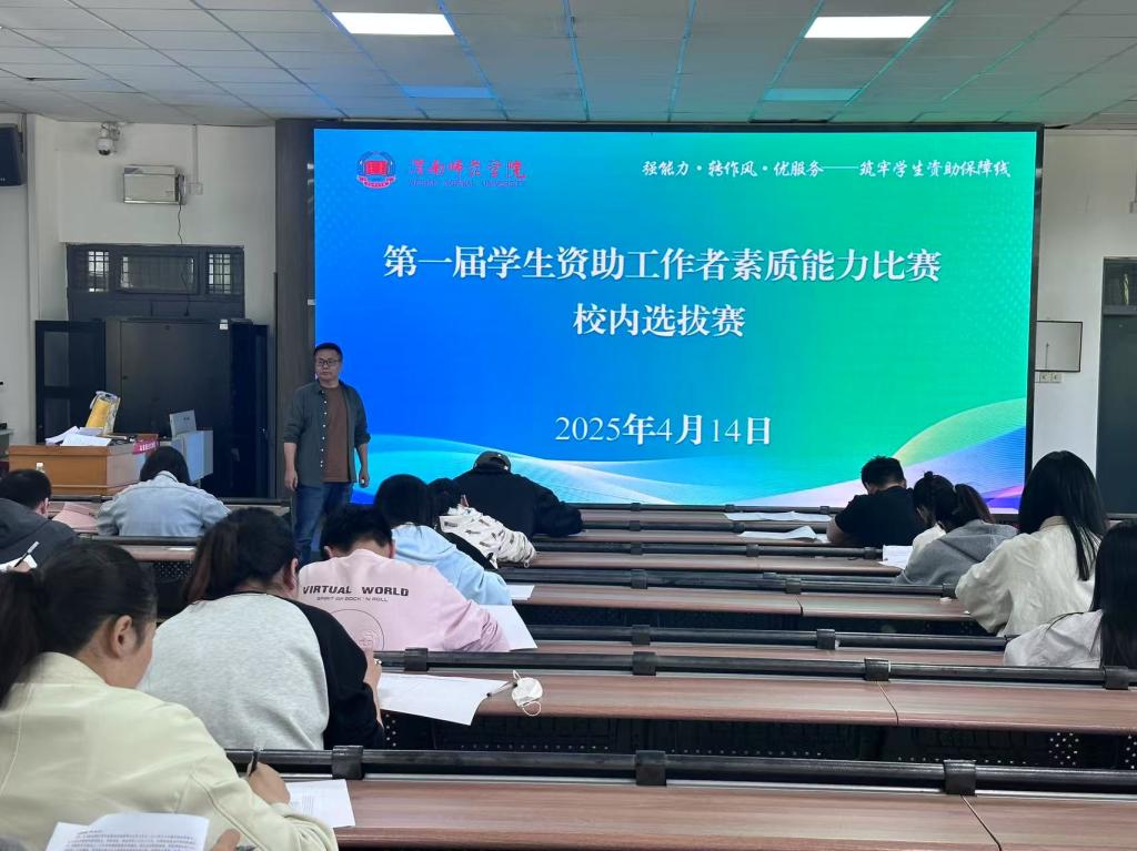 为进一步提升学校学生资助工作队伍作风能力、职业素养和业务水平,更好地服务新时期学生资助事业高质量发展,4月14日下午,学校举办第一届学生资助工作者素质能力比赛校内选拔赛,来自各二级学院的50余名辅导员参加比赛。