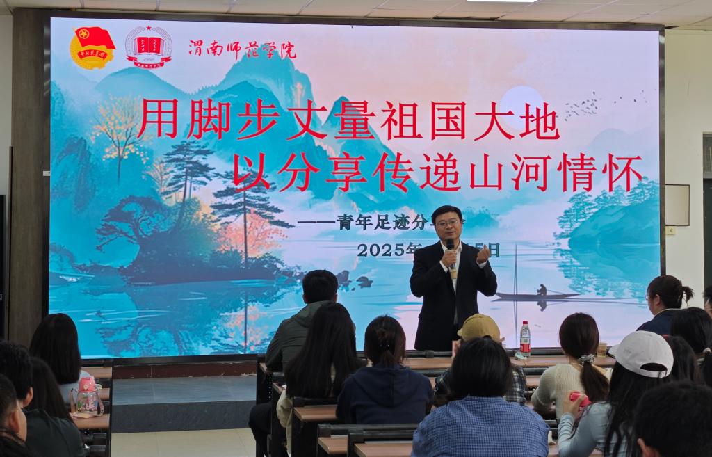 4月15日下午,校团委举办“用脚步丈量祖国大地 以分享传递山河情怀”青年足迹分享会。党委副书记常青林,团委副书记潘涛、任晓婷,各二级学院团委书记,渭师青年讲解团以及各二级学院学生代表参加此次活动。